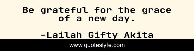 This page presents the quote "Be grateful for the grace of a new day.". Author of this quote is Lailah Gifty Akita. This quote is about inspiring, new-day, grateful,.