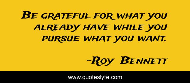 This page presents the quote "Be grateful for what you already have while you pursue what you want.". Author of this quote is Roy Bennett. This quote is about gratitude, life, grateful-attitude, grateful, living-life, inspirational, enthusiasm, inspiration,.