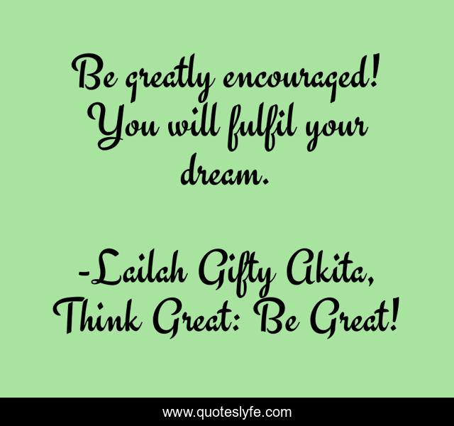 "Lailah Gifty Akita, Think Great: Be Great! Quotes." Quoteslyfe.com, 2025. Mon. 08 Dec. 2025. <https://www.quoteslyfe.com/quote/Be-greatly-encouraged-You-will-fulfil-your-131103>.