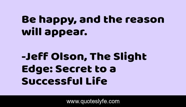 "Jeff Olson, The Slight Edge: Secret to a Successful Life Quotes." Quoteslyfe.com, 2025. Sat. 06 Dec. 2025. <https://www.quoteslyfe.com/quote/Be-happy-and-the-reason-will-appear-17081>.