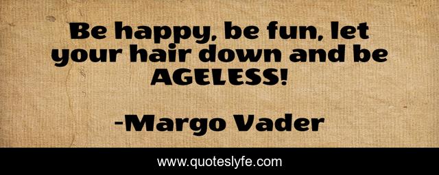 This page presents the quote "Be happy, be fun, let your hair down and be AGELESS!". Author of this quote is Margo Vader. This quote is about humor, ageless, inspirational, fun, enthusiasm, happy,.