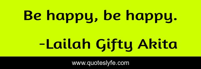 This page presents the quote "Be happy, be happy.". Author of this quote is Lailah Gifty Akita. This quote is about living, life, joy, inspirational, enthusiasm, happy,.