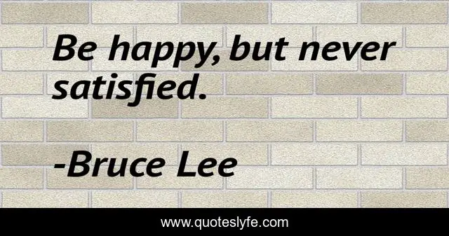 This page presents the quote "Be happy, but never satisfied.". Author of this quote is Bruce Lee. .
