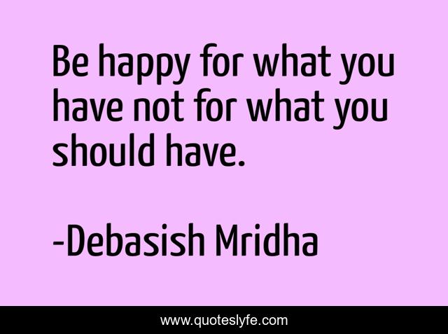 "Debasish Mridha Quotes." Quoteslyfe.com, 2025. Sat. 06 Dec. 2025. <https://www.quoteslyfe.com/quote/Be-happy-for-what-you-have-not-183252>.