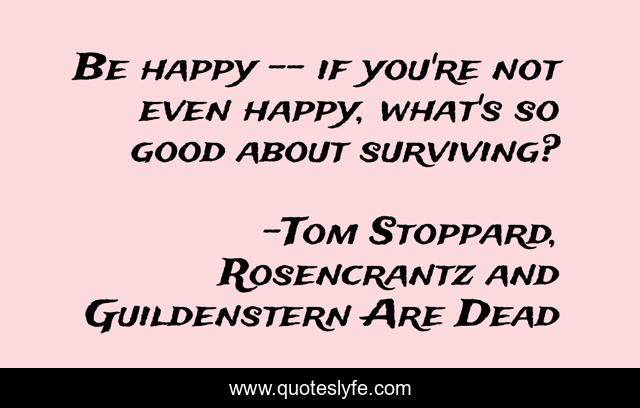 This page presents the quote "Be happy -- if you're not even happy, what's so good about surviving?". Author of this quote is Tom Stoppard, Rosencrantz and Guildenstern Are Dead. This quote is about life, survival, optimism, depression, happiness, struggle,.