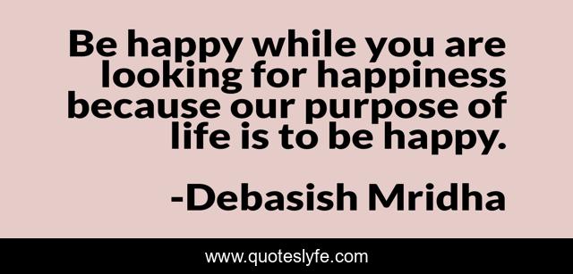 Be happy while you are looking for happiness because our purpose of life is to be happy.