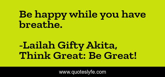 "Lailah Gifty Akita, Think Great: Be Great! Quotes." Quoteslyfe.com, 2025. Sat. 06 Dec. 2025. <https://www.quoteslyfe.com/quote/Be-happy-while-you-have-breathe-94931>.