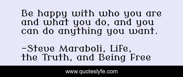This page presents the quote "Be happy with who you are and what you do, and you can do anything you want.". Author of this quote is Steve Maraboli, Life, the Truth, and Being Free. This quote is about gratitude, life, success, positive, motivational, confidence, appreciation, self-empowerment, knowing-oneself,.
