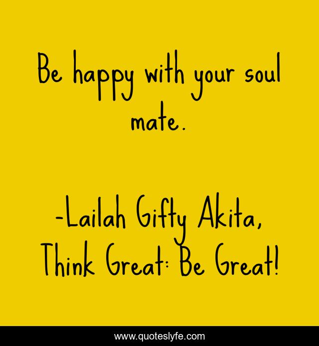 "Lailah Gifty Akita, Think Great: Be Great! Quotes." Quoteslyfe.com, 2025. Sat. 06 Dec. 2025. <https://www.quoteslyfe.com/quote/Be-happy-with-your-soul-mate-63684>.