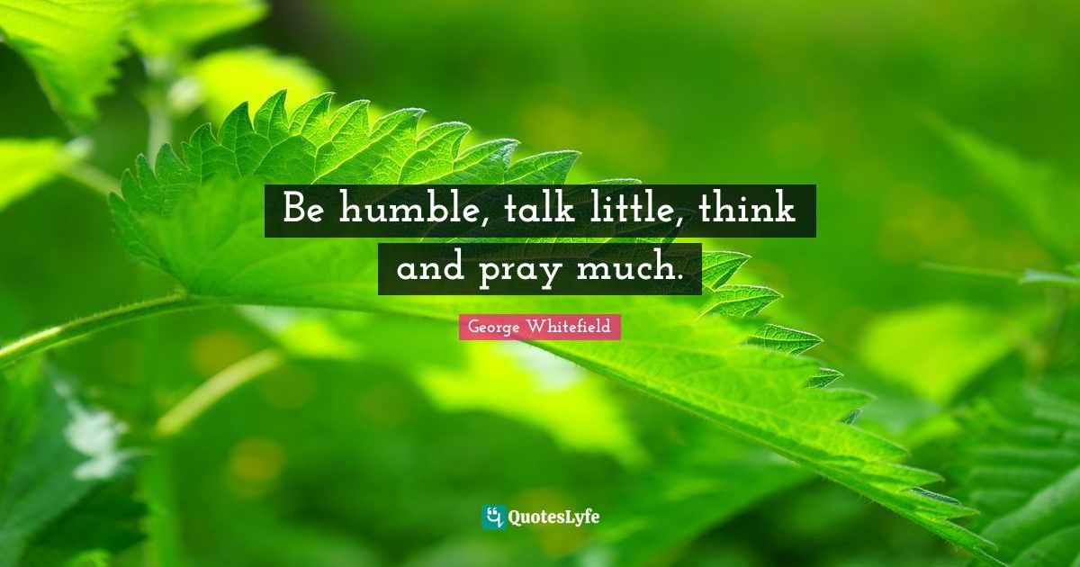 This page presents the quote "Be humble, talk little, think and pray much.". Author of this quote is George Whitefield. This quote is about littles, be humble, humble, thinking,.