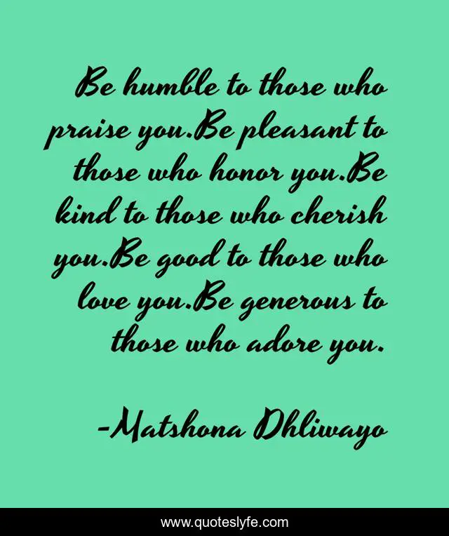 "Matshona Dhliwayo Quotes." Quoteslyfe.com, 2025. Mon. 08 Dec. 2025. <https://www.quoteslyfe.com/quote/Be-humble-to-those-who-praise-you-198919>.