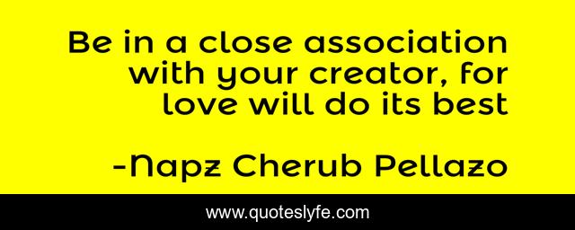 This page presents the quote "Be in a close association with your creator, for love will do its best". Author of this quote is Napz Cherub Pellazo. This quote is about creator, will-do, sunday, inspirational, enthusiasm, close, god-s-love, best,.