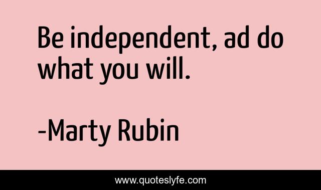 "Marty Rubin Quotes." Quoteslyfe.com, 2025. Mon. 08 Dec. 2025. <https://www.quoteslyfe.com/quote/Be-independent-ad-do-what-you-will-54698>.