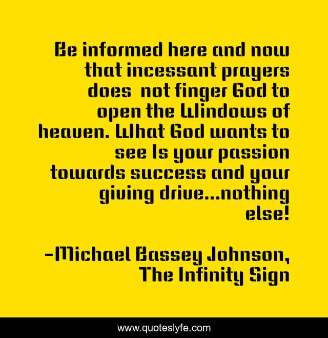 "Michael Bassey Johnson, The Infinity Sign Quotes." Quoteslyfe.com, 2025. Fri. 05 Dec. 2025. <https://www.quoteslyfe.com/quote/Be-informed-here-and-now-that-incessant-92831>.
