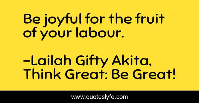 "Lailah Gifty Akita, Think Great: Be Great! Quotes." Quoteslyfe.com, 2025. Sun. 07 Dec. 2025. <https://www.quoteslyfe.com/quote/Be-joyful-for-the-fruit-of-your-97246>.