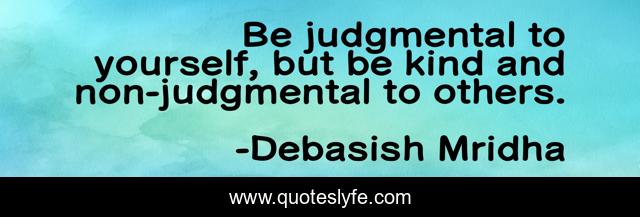 This page presents the quote "Be judgmental to yourself, but be kind and non-judgmental to others.". Author of this quote is Debasish Mridha. This quote is about miraboli, oscar-wilde, philosophy, debasish-mridha, be-kind, tagore, quotes, buddha, debasish-mridha-md,.