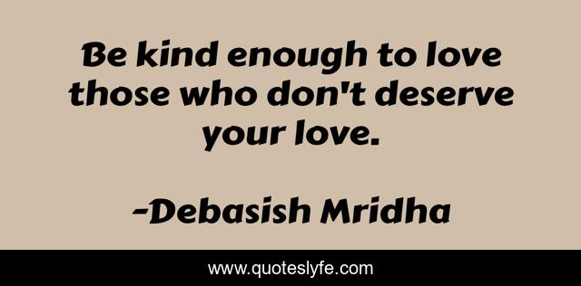 This page presents the quote "Be kind enough to love those who don't deserve your love.". Author of this quote is Debasish Mridha. This quote is about life, love, knowledge, inspirational, intelligence, philosophy, wisdom, quotes, affection,.