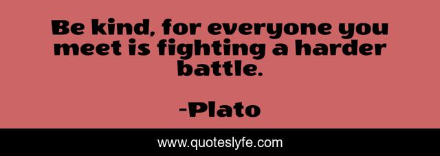 This page presents the quote "Be kind, for everyone you meet is fighting a harder battle.". Author of this quote is Plato. This quote is about compassion, kindness,.