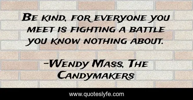 "Wendy Mass, The Candymakers Quotes." Quoteslyfe.com, 2025. Mon. 08 Dec. 2025. <https://www.quoteslyfe.com/quote/Be-kind-for-everyone-you-meet-is-136175>.