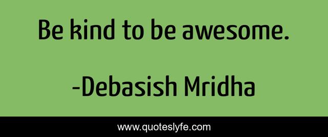 "Debasish Mridha Quotes." Quoteslyfe.com, 2025. Mon. 08 Dec. 2025. <https://www.quoteslyfe.com/quote/Be-kind-to-be-awesome-74803>.
