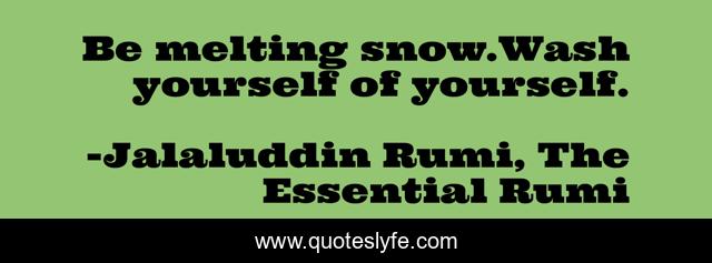 This page presents the quote "Be melting snow.Wash yourself of yourself.". Author of this quote is Jalaluddin Rumi, The Essential Rumi. This quote is about enthusiasm, inspirational,.