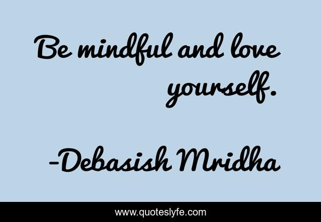"Debasish Mridha Quotes." Quoteslyfe.com, 2025. Sat. 06 Dec. 2025. <https://www.quoteslyfe.com/quote/Be-mindful-and-love-yourself-206415>.