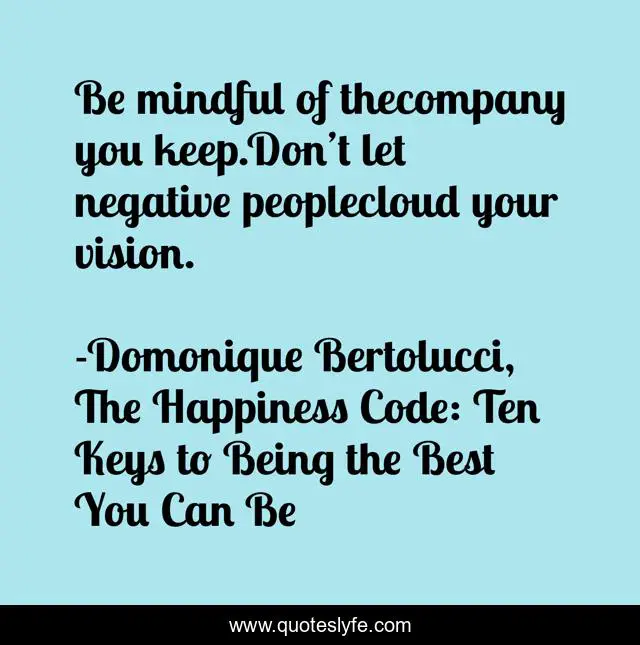 "Domonique Bertolucci, The Happiness Code: Ten Keys to Being the Best You Can Be Quotes." Quoteslyfe.com, 2025. Tue. 09 Dec. 2025. <https://www.quoteslyfe.com/quote/Be-mindful-of-thecompany-you-keep-Don-215362>.