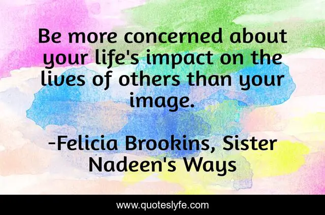 This page presents the quote "Be more concerned about your life's impact on the lives of others than your image.". Author of this quote is Felicia Brookins, Sister Nadeen's Ways. This quote is about faith, spiritual, religious, hypocrisy,.