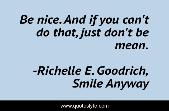 "Richelle E. Goodrich, Smile Anyway Quotes." Quoteslyfe.com, 2025. Fri. 05 Dec. 2025. <https://www.quoteslyfe.com/quote/Be-nice-And-if-you-can-t-136251>.