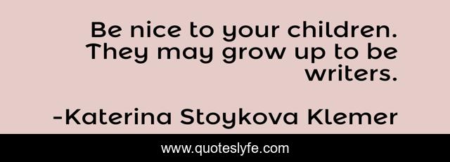 This page presents the quote "Be nice to your children. They may grow up to be writers.". Author of this quote is Katerina Stoykova Klemer. This quote is about relationships, children, parents, childhood, writing,.