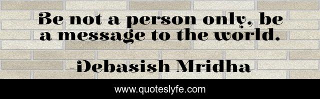 This page presents the quote "Be not a person only, be a message to the world.". Author of this quote is Debasish Mridha. This quote is about person, philosophy, debasish-mridha, quotes, be-a-message, debasish-mridha-md, inspirational, enthusiasm, message,.