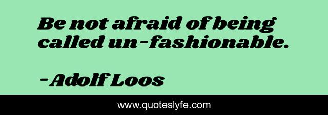 This page presents the quote "Be not afraid of being called un-fashionable.". Author of this quote is Adolf Loos. This quote is about self-discovery, fashion, creativity,.
