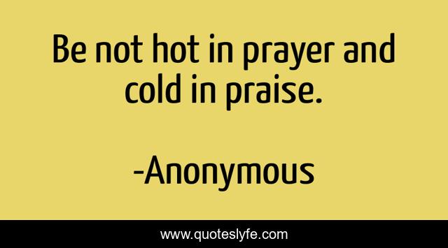 This page presents the quote "Be not hot in prayer and cold in praise.". Author of this quote is Anonymous. .