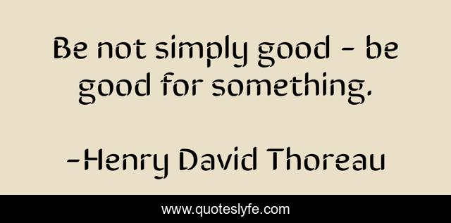 This page presents the quote "Be not simply good - be good for something.". Author of this quote is Henry David Thoreau. This quote is about simply, something,.