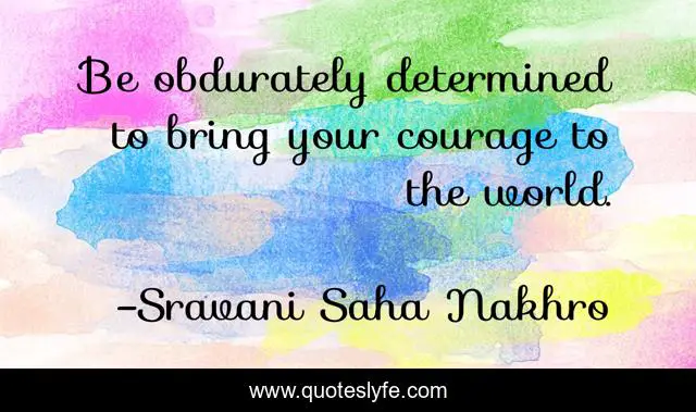 This page presents the quote "Be obdurately determined to bring your courage to the world.". Author of this quote is Sravani Saha Nakhro. .