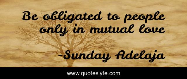 This page presents the quote "Be obligated to people only in mutual love". Author of this quote is Sunday Adelaja. This quote is about kingdom, life, love, destiny, serving-god, people, money, god, work,.
