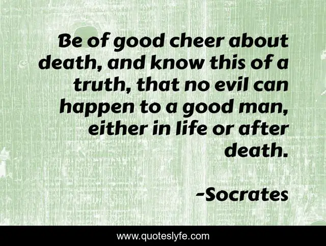 This page presents the quote "Be of good cheer about death, and know this of a truth, that no evil can happen to a good man, either in life or after death.". Author of this quote is Socrates. .