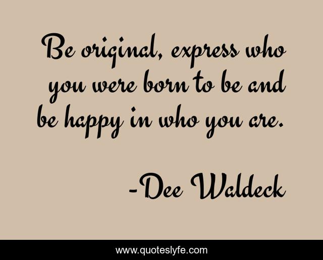 "Dee Waldeck Quotes." Quoteslyfe.com, 2025. Sat. 06 Dec. 2025. <https://www.quoteslyfe.com/quote/Be-original-express-who-you-were-born-172380>.