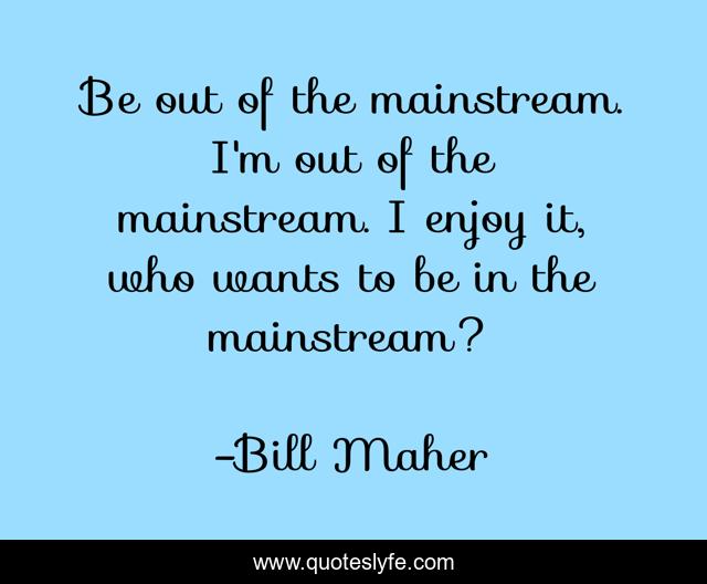 This page presents the quote "Be out of the mainstream. I'm out of the mainstream. I enjoy it, who wants to be in the mainstream?". Author of this quote is Bill Maher. This quote is about culture, politics,.