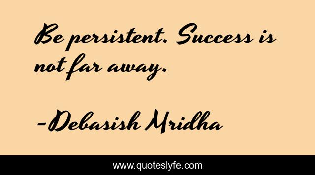 This page presents the quote "Be persistent. Success is not far away.". Author of this quote is Debasish Mridha. This quote is about success-is-not-far-away, success, philosophy, debasish-mridha, be-persistent, quotes, inspirational, enthusiasm, debasish-mridha-m-d,.