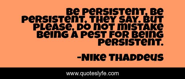 This page presents the quote "Be persistent, be persistent, they say. But please, do not mistake being a pest for being persistent.". Author of this quote is Nike Thaddeus. This quote is about negotiation, writer, africa, sales, nigerian, marketing-etiquette, relationships, networking, pester,.