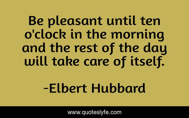 This page presents the quote "Be pleasant until ten o'clock in the morning and the rest of the day will take care of itself.". Author of this quote is Elbert Hubbard. .