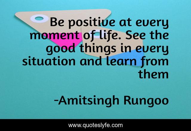 This page presents the quote "Be positive at every moment of life. See the good things in every situation and learn from them". Author of this quote is Amitsingh Rungoo. .