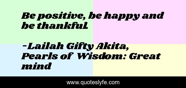"Lailah Gifty Akita, Pearls of Wisdom: Great mind Quotes." Quoteslyfe.com, 2025. Sat. 06 Dec. 2025. <https://www.quoteslyfe.com/quote/Be-positive-be-happy-and-be-thankful-95230>.