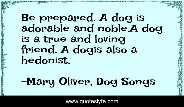 "Mary Oliver, Dog Songs Quotes." Quoteslyfe.com, 2025. Sat. 06 Dec. 2025. <https://www.quoteslyfe.com/quote/Be-prepared-A-dog-is-adorable-and-207431>.