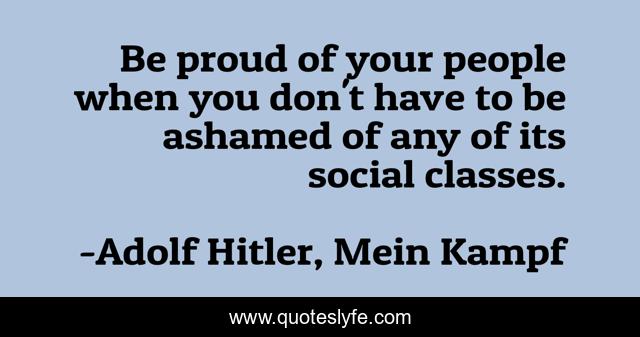 This page presents the quote "Be proud of your people when you don't have to be ashamed of any of its social classes.". Author of this quote is Adolf Hitler, Mein Kampf. This quote is about proud, patriotism, ashamed,.