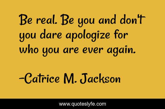 This page presents the quote "Be real. Be you and don't you dare apologize for who you are ever again.". Author of this quote is Catrice M. Jackson. This quote is about courage, authenticity, catriceology, truth, inspiration,.