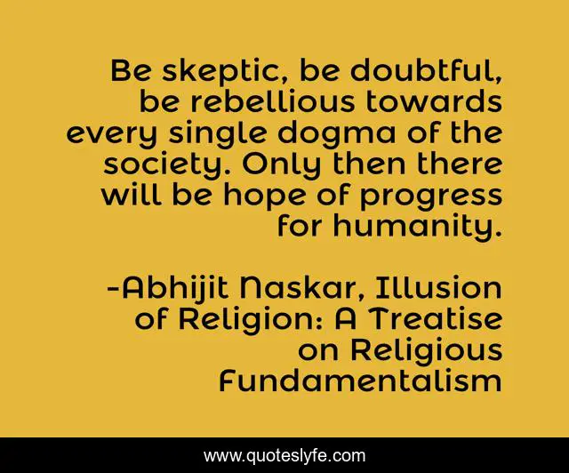 "Abhijit Naskar, Illusion of Religion: A Treatise on Religious Fundamentalism Quotes." Quoteslyfe.com, 2025. Sat. 06 Dec. 2025. <https://www.quoteslyfe.com/quote/Be-skeptic-be-doubtful-be-rebellious-towards-123891>.