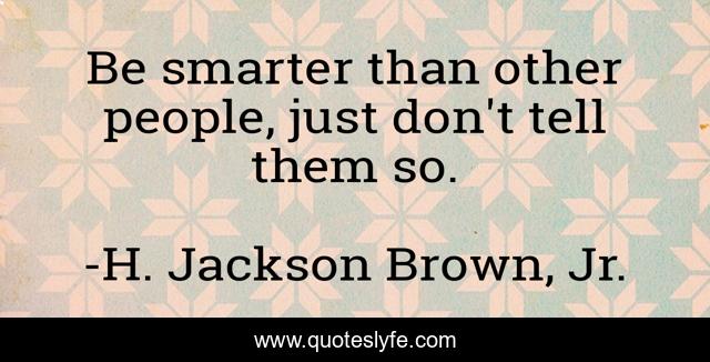 "H. Jackson Brown, Jr. Quotes." Quoteslyfe.com, 2025. Mon. 08 Dec. 2025. <https://www.quoteslyfe.com/quote/Be-smarter-than-other-people-just-don-298421>.
