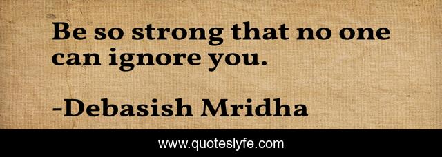 This page presents the quote "Be so strong that no one can ignore you.". Author of this quote is Debasish Mridha. This quote is about debasish, mridha, philosophy, debasish-mridha, no-one-can-ignore-you, be-strong, be-so-strong,.